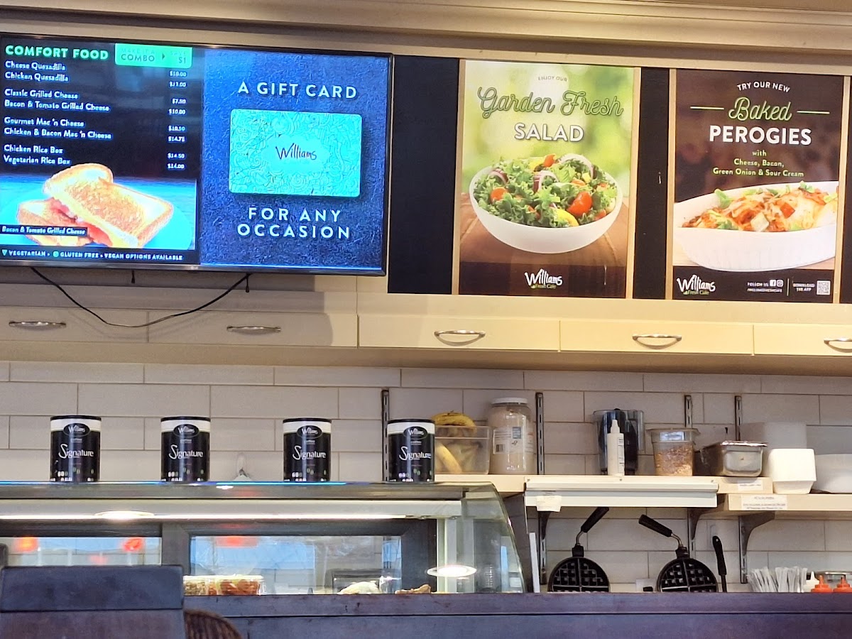Welcome to Williams Fresh Cafe, a vibrant spot located at 4025 Dorchester Rd in Niagara Falls. Known for its inviting atmosphere, this cafe serves up a delightful menu that caters to various tastes. Start your day with a cozy cup of premium brewed coffee or tea, both affordably priced and praised for their flavor. The standout dishes include the hazelnut banana crunch waffle and savory flatbread pizzettas, perfectly complemented by fresh ingredients like arugula and balsamic reduction. Guests rave about the scrumptious breakfast options, often highlighting their generous portions and satisfying flavors. Each item is crafted to create a memorable experience, whether you dine in or grab a takeaway. With attentive service and a warm ambiance, Williams Fresh Cafe quickly becomes a favorite for those seeking delicious meals at reasonable prices. Enjoy a unique dining experience that combines freshness with comfort!